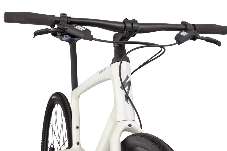 Cuadro: Specialized FACT 9r Carbon, geometría Fitness, Compliance Junction, cableado interno, eje pasante 12×142 mm, montaje plano, soportes Plug + Play para portabultos y guardabarros.