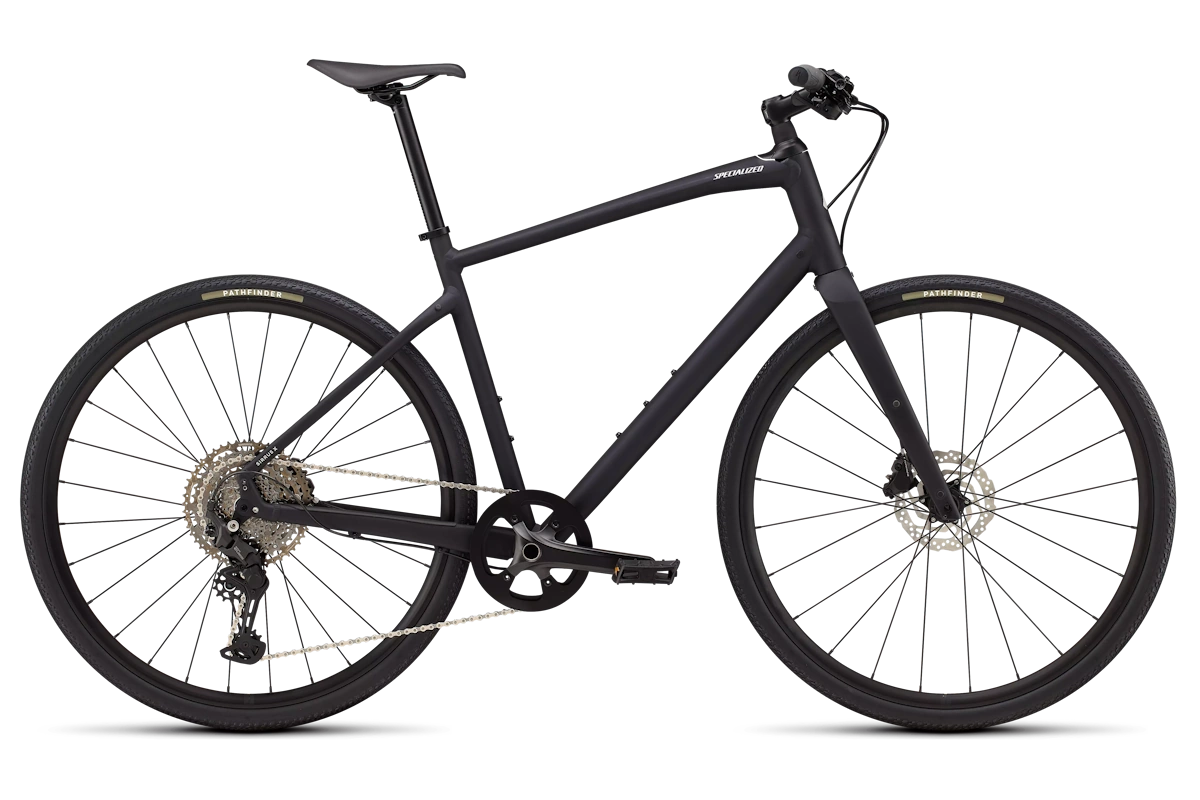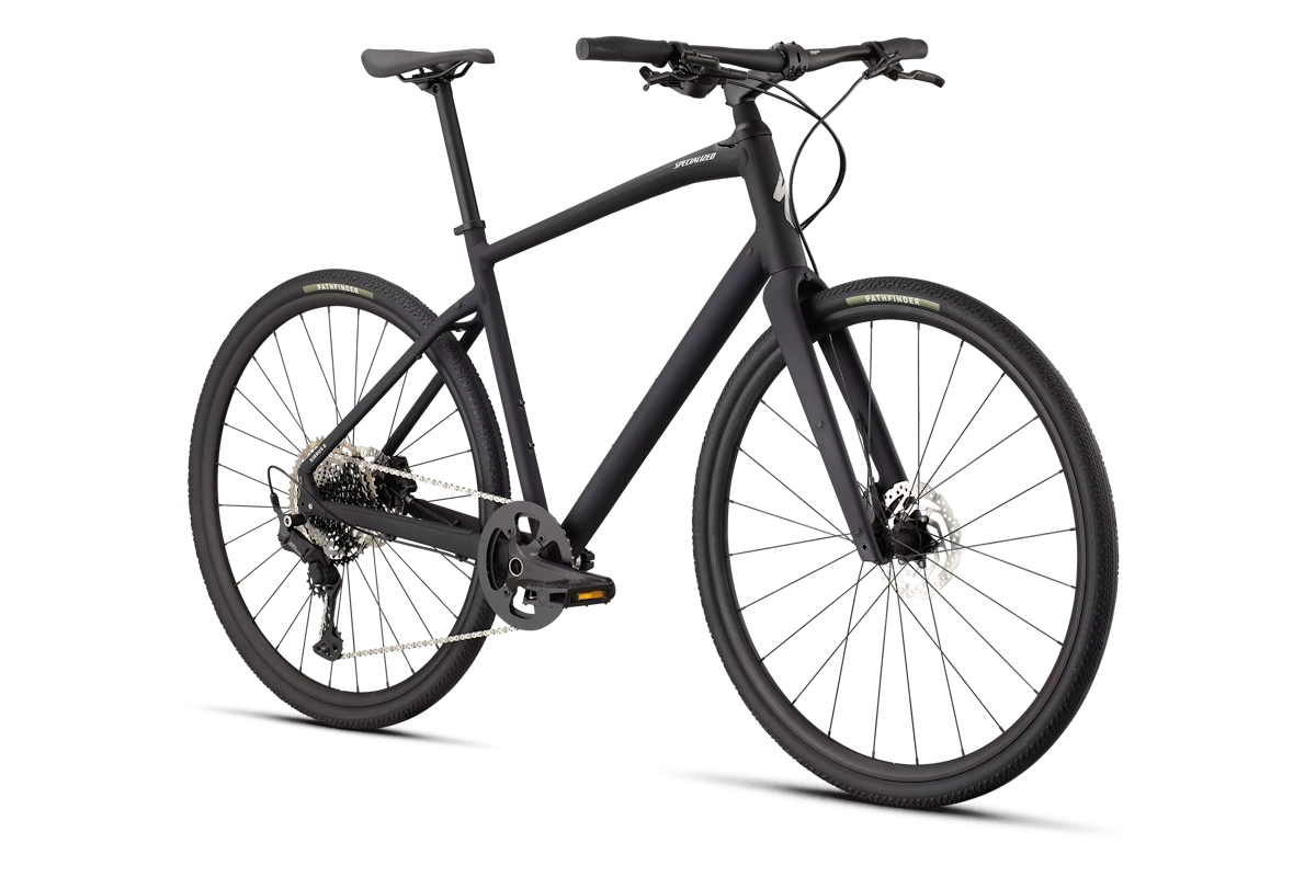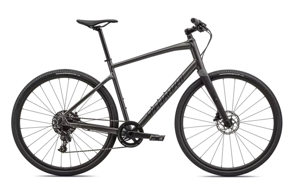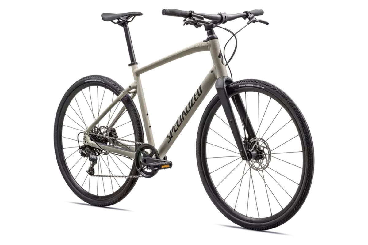 Cuadro: Specialized A1SL Premium Aluminum, Fitness Geometry, tubería butted, cableado interno, flat-mount disc, quick-release, anclajes Plug + Play para portabultos/guardabarros