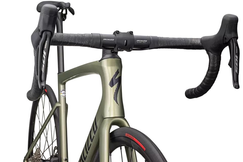 Inspirada en los aprendizajes de la Venge, la nueva Tarmac integra un diseño sencillo y funcional que crea un cockpit limpio y aerodinámico. El enrutamiento del cableado ha sido optimizado para adaptarse a cualquier configuración (cambios mecánicos, vástagos tradicionales, manillares redondos, etc.), facilitando el mantenimiento y los viajes con la bicicleta. Es una solución en la que todos ganan.