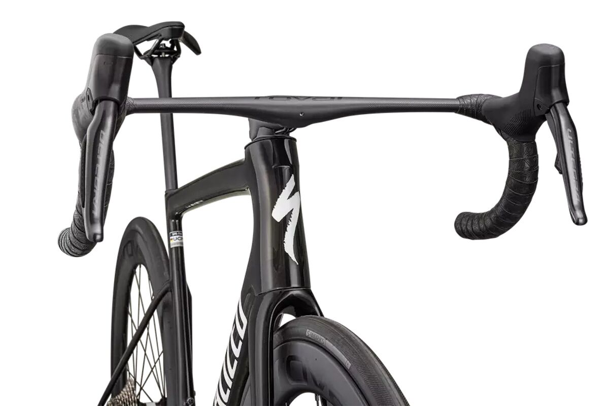 - Componentes: Manillar integrado Roval Rapide Cockpit, potencia integrada SL7, tija S-Works Tarmac SL8 Carbon.