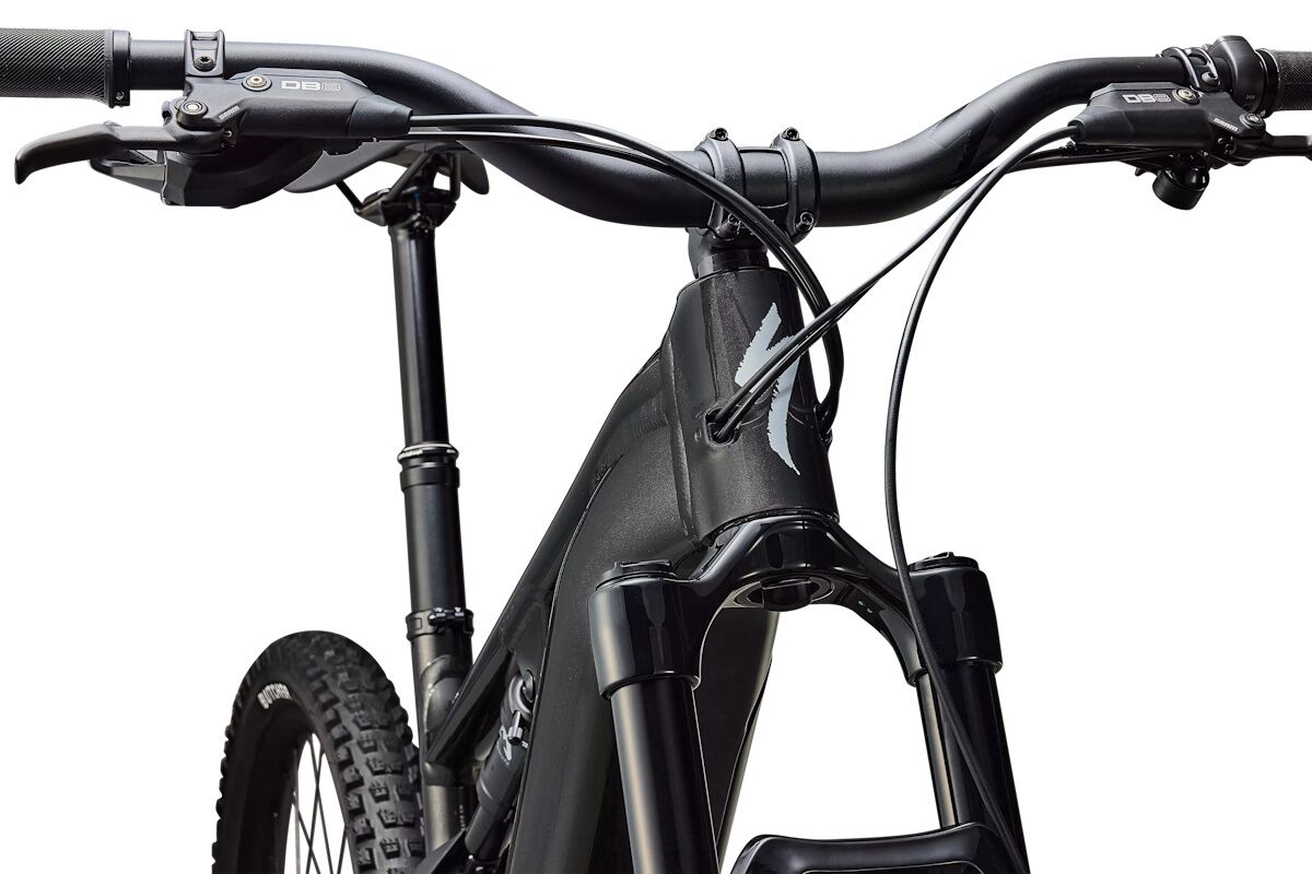 - Cuadro: M5 Premium Alloy, 150 mm de recorrido trasero, geometría ajustable, almacenamiento SWAT integrado.