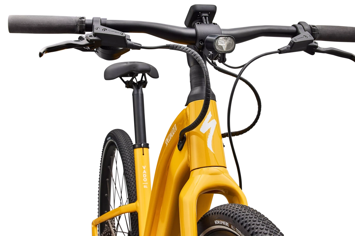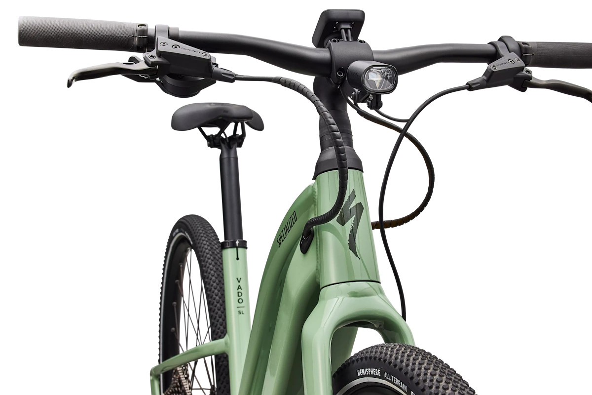 Cuadro: Vado SL Step-Through (barra baja) — subir y bajar es más fácil en semáforos, con ropa de calle o con carga; accesible para un rango amplio de ciclistas.
