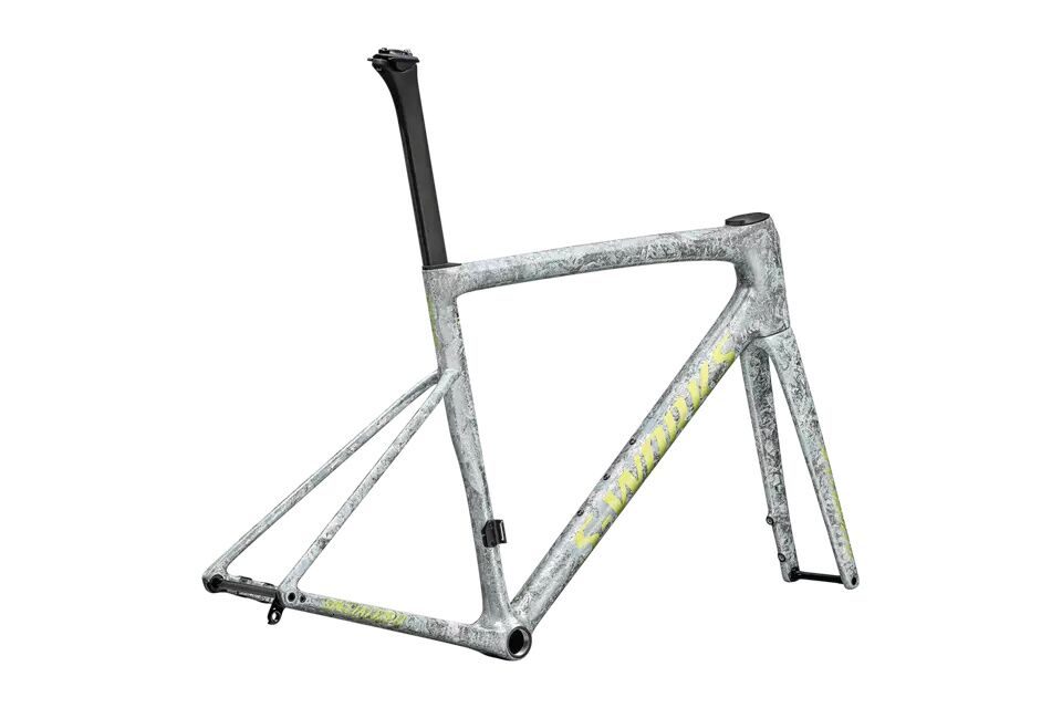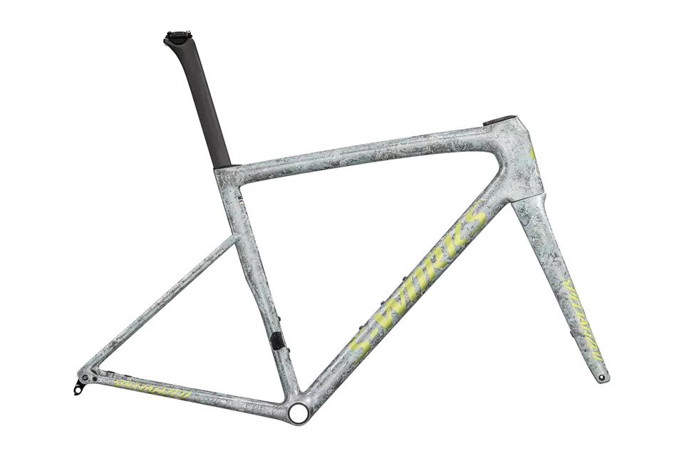 Cuadro Specialized S-Works Tarmac SL8 2025 Satin Liquid Silver / Multi-Color Dry Impasto / Gloss Team Yellow Tint: “La base Perfecta para tu obra maestra”